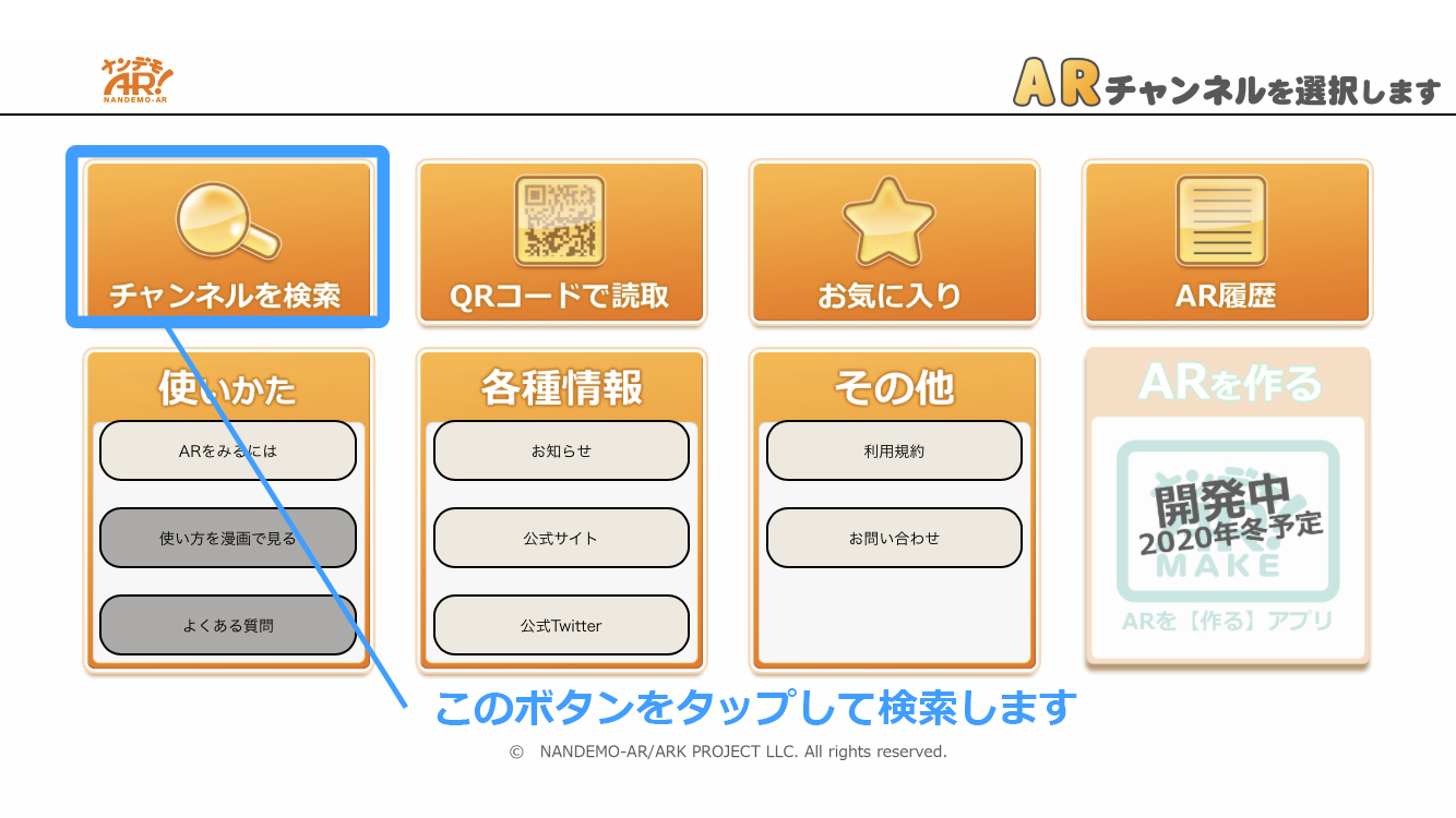 ①検索でナンデモARに登録されているチャンネルを選択します。
