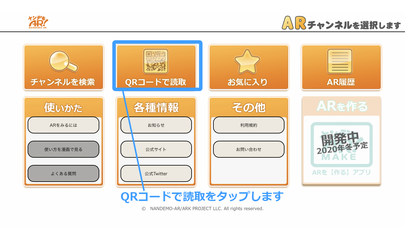 ナンデモARでは「お気に入りに登録されているチャンネルのAR」をみることができます。